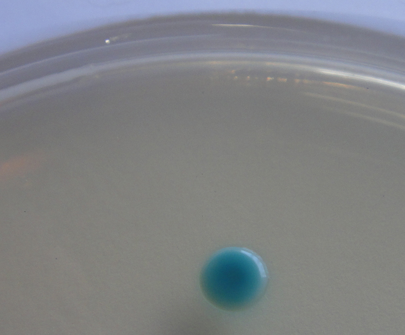 Candida albicans MKTA 10321, Excelente, colonias verde-azul celeste.