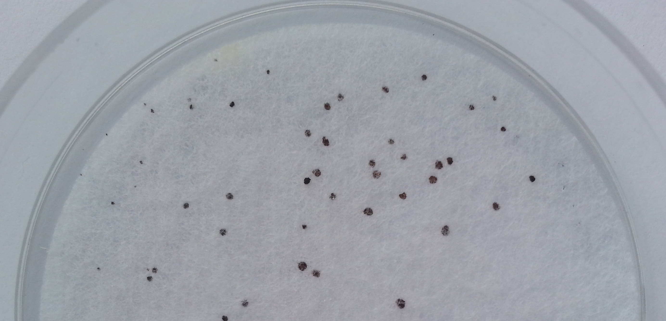 - Añadir al centro de la base de la placa 1 ml de la muestra líquida tratada (si es espesa, realice diluciones decimales hasta que sea acuosa) y dejar caer encima el disco nutriente (con pinzas o simplemente cerrando la tapa con disco sobre la base de la placa), nunca al revés: si lo hace al revés, 1 ml de muestra sobre el disco, la rapidísima difusión de este medio le hará captar mucha menos muestra, que quedará alrededor del disco esperando a poder ser absorbida por el mismo durante la incubación, dando lugar a recuentos mucho más bajos de la realidad. Cerrar la placa.