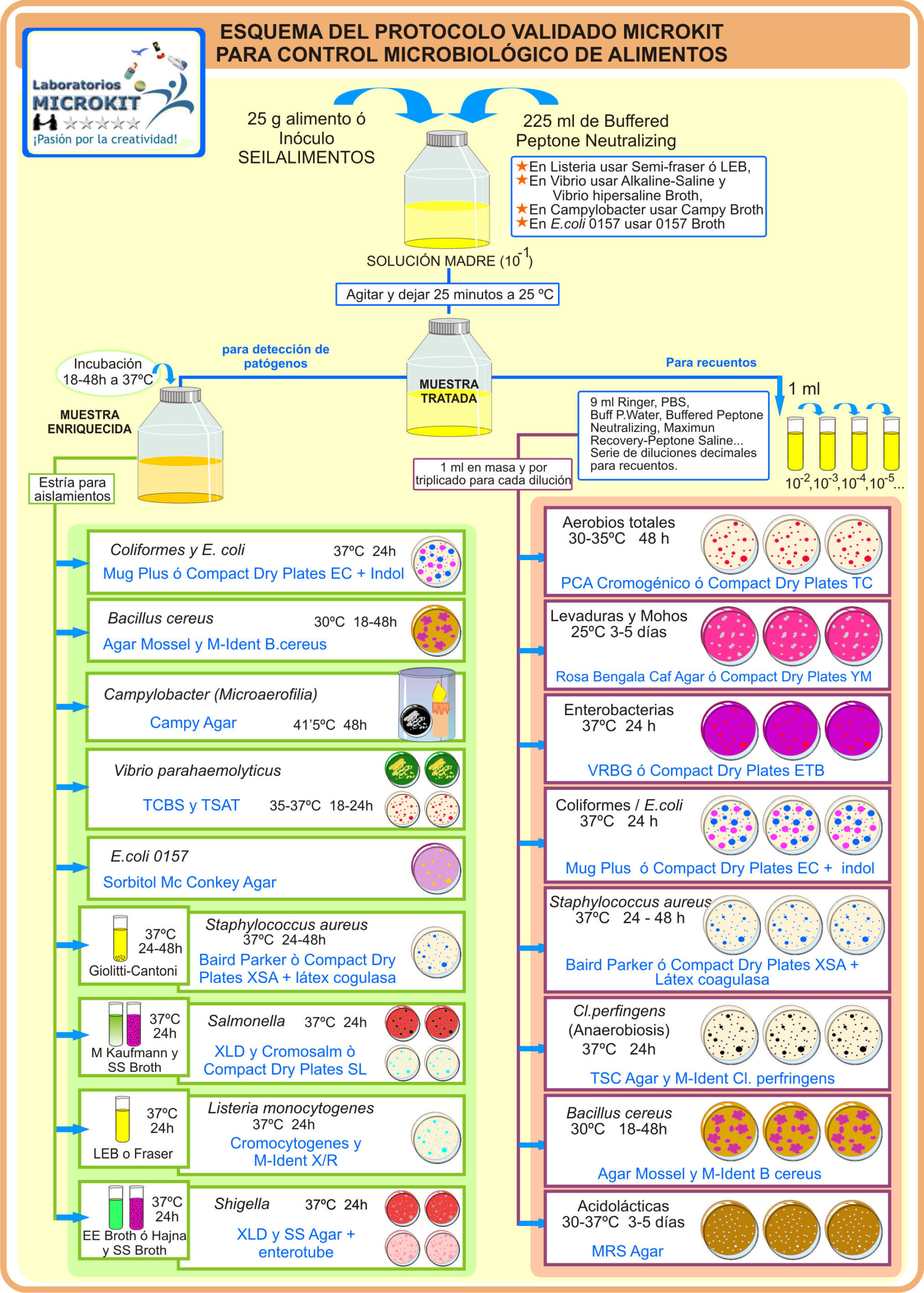 PROTOCOLOS AVANZADOS MICROKIT para OPTIMIZACIÓN en microbiología de alimentos, aguas y cosméticos. Con diagramas de flujo de los procesos optimizados. Diseñado para obtener sobresaliente en servicios intercomparativos, inspecciones o auditorías ISO 9001. 148 págs. Gratis para clientes que lo soliciten con SEILASESORÍA