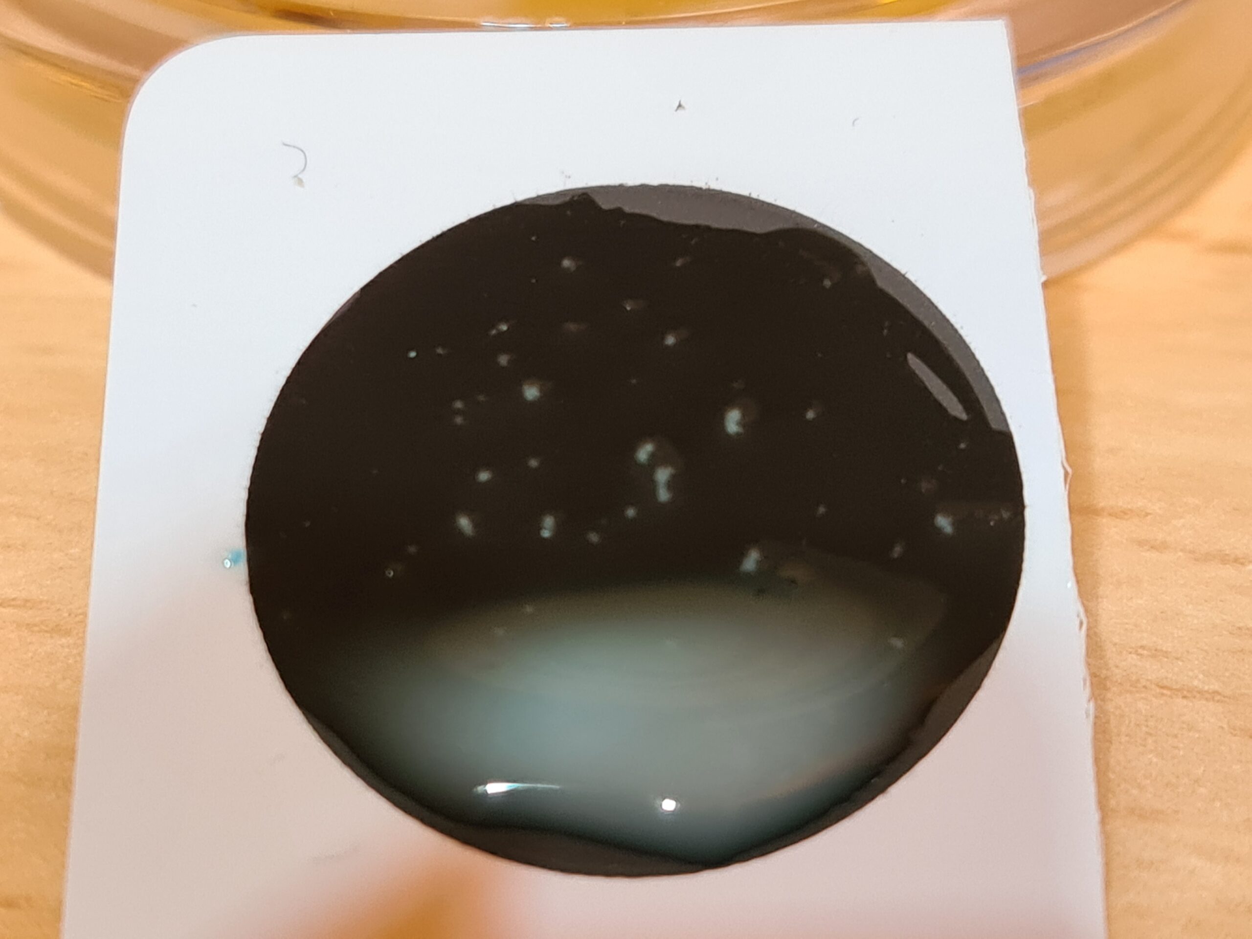 Al mezclar la colonia de Staphylococcus aureus, suspendida en salina, con el látex, se presenta una inmediata aglutinación de todas las partículas de látex, en grandes grumos, visibles sin necesidad de lupa, que aparecen sobre un fondo transparente.