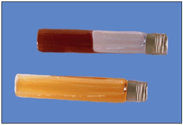 Ya que Clostridium perfringens es Lactosa + (vira el medio rojo a naranja), licúa la gelatina que estaba sólida, reduce el nitrato a nitrito (viraje a rosa tras añadir los reactivos de nitrato A y B) y crece sin movilidad desde la línea de picadura (ver el medio Nitratos-Movilidad abajo del todo del artículo).