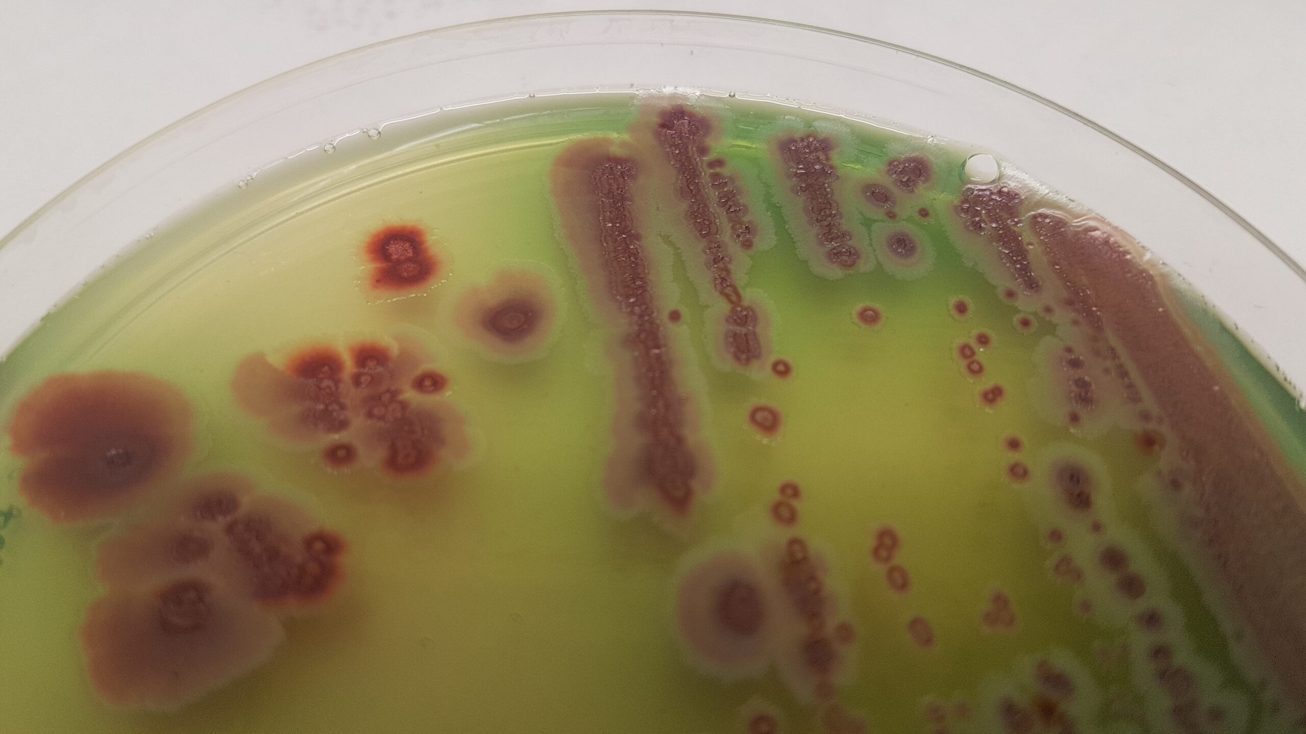 La ventaja es que en las primeras 18 h desde la siembra en placa, ya sabemos qué muestras no contienen este patógeno: no hay colonias rojas.