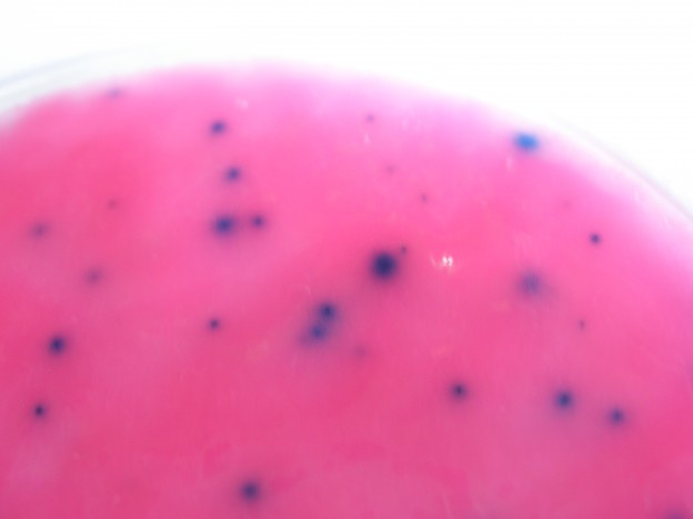 - Leer los resultados buscando sólo las colonias diana: B.cereus azules (con viraje del medio salmón a fucsia) y resto de posibles positivos, con colonias no azules y/o sin viraje del medio salmón a fucsia.
