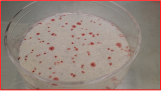 - bacterias rojas en DryPlates®-TSA cromogénico, mohos filamentosos-algodonosos en DryPlates®-SDA Caf y levaduras no filamentosas ni algodonosas en DryPlates®-SDA Caf.