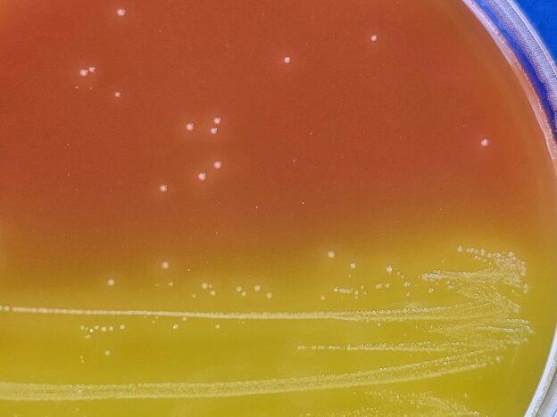 Clostridium perfringens WDCM00007 Colonias con halo amarillo precipitado