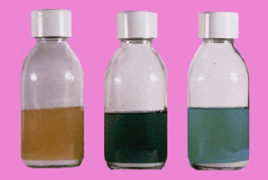 Izda: Salmonella (turbidez y pérdida de color), Centro: Shigella (turbidez y turquesa), Dcha: otras Enterobacterias. (sin turbidez)