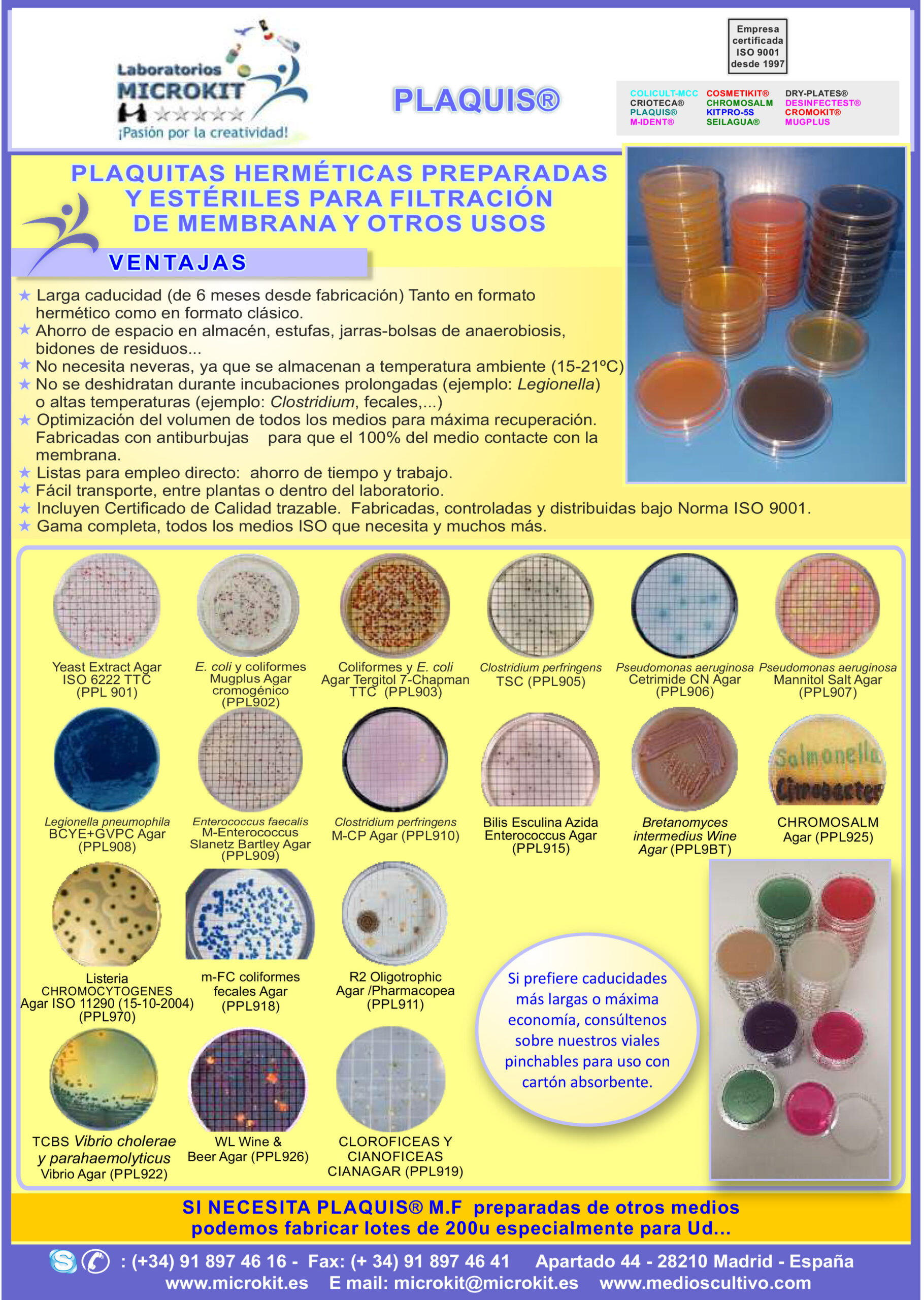 Si desea más información sobre nuestras PLAQUIS® PLAQUITAS PREPARADAS HERMETICAS MICROKIT® no dude en contactar con nosotros a través de nuestro correo electrónico microkit@microkit.es, o por teléfono en el nº 91-897 46 16.