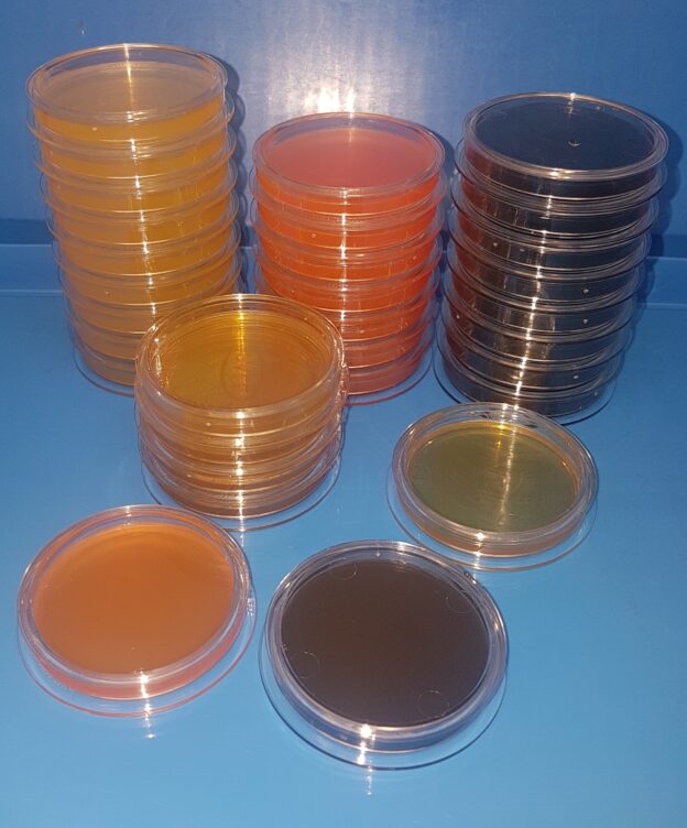 ♥ Y tambien de todos los medios para estríar tras enriquecimiento: Salmonella ABC, XLD, Listeria O&A, Baird Parker, BPX19, BCPT, BCSA, Biggy, Cetrimida, CUP12A, EMB Levine, KIng A/B, MacConkey Agar, mFC, RB Caf…