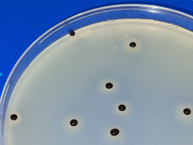 Si añadimos yema de huevo (sin telutito) a este medio, veremos además la actividad lecitinasa de cada colonia (por su halo de lisis).